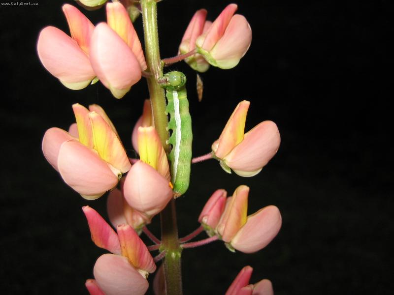 Jící housenka (v noci).