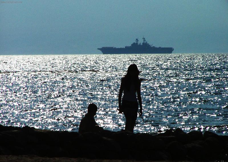 Foto: letadlova lod-svitani na hranici izraele a egypta cerven 2006
