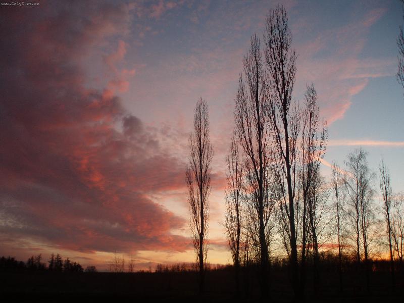 kouzlo zimního stmívání, příroda, stromy